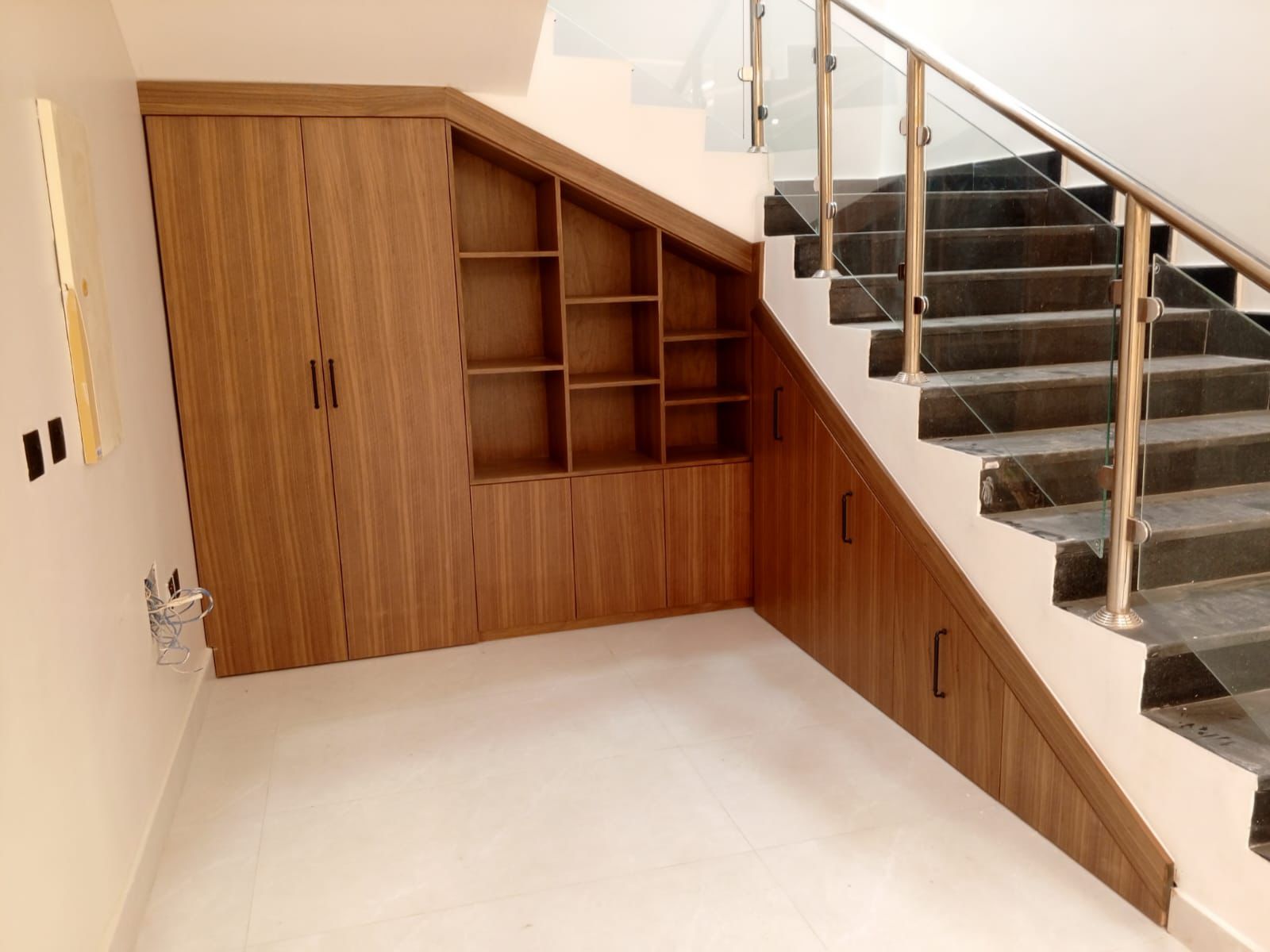 الوزن: إذا كنت ستضع كتباً ثقيلة، اطلب منا زيادة دعامات التثبيت المخفية.